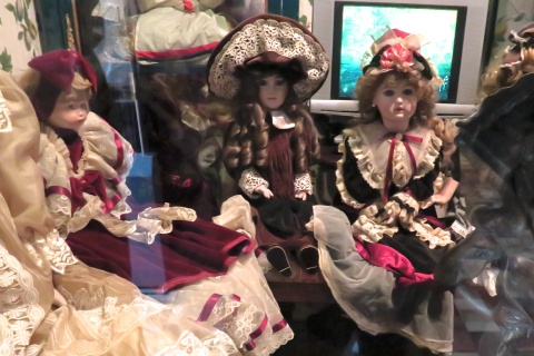 | 13:15 こちらは比較的新しいおドールを集めたお店。 このへんの時代になると、記憶に残っているお人形 も多いです。 |