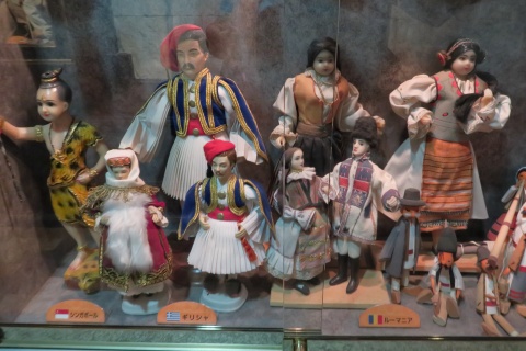 | 12:10 今回の旅の大きな目的の一つが、伊香保おもちゃと 人形 自動車博物館です。 (入館料1080円) 何かいろいろなものを見ることができて、私設ミュー ジアムとしては年間入場者No.1なんだそうな。 外観はとてもおしゃれな洋館、高級なホテルみたい です。 入場券を購入するとなぜか小さなキューピーをもら うことができます。 |