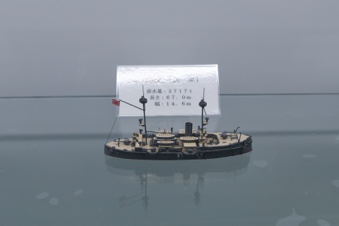 30cmの主砲はコンクリート、マストや煙突はレプリカ。