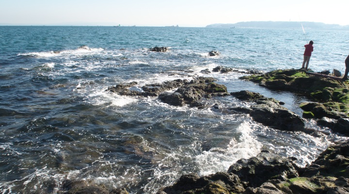 岩場には釣り人がたくさん、それからなぜかコスプレーヤーさんも・・・。