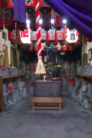とってもアメリカンな通りなのですが、歩き始めてすぐに「延命地蔵尊」が
