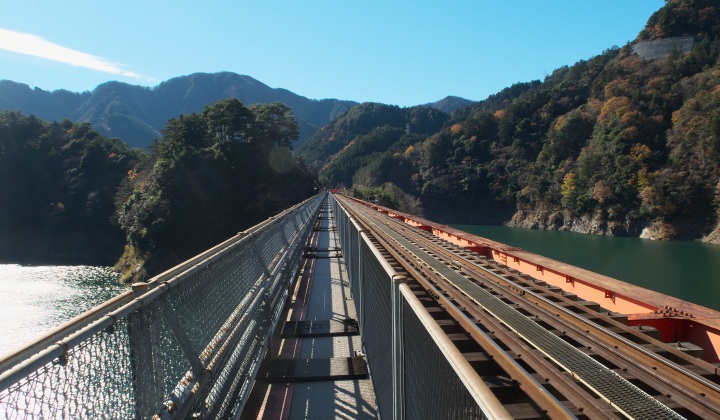 この湖上駅には鉄橋を歩いて渡ることができるんです。