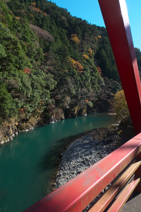 残る紅葉と大井川の渓谷の流れがとてもきれいです。