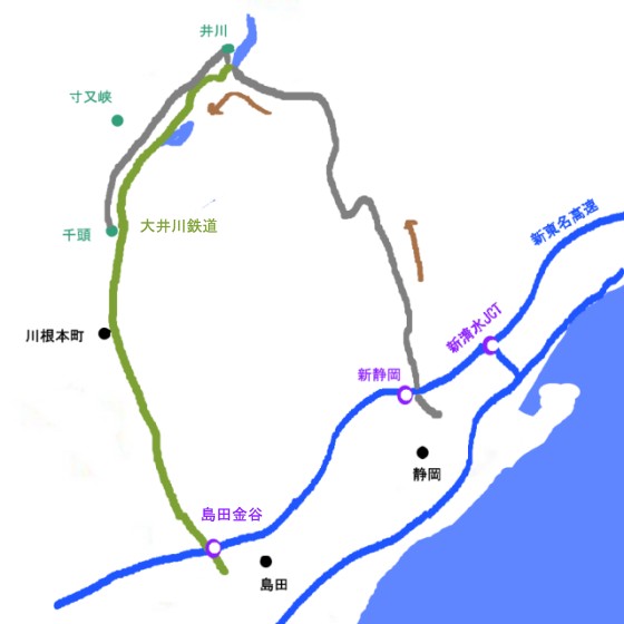 今回は新東名を新静岡ICで降りて、大井川の上流を目指します。向かう先の井川は