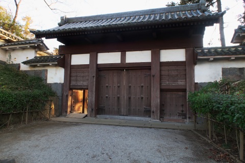 昭和58年に復元された館林城土橋門と三の丸跡。