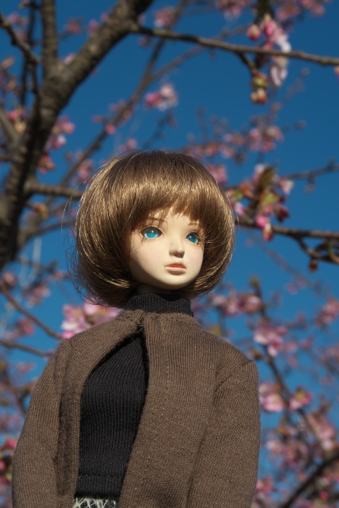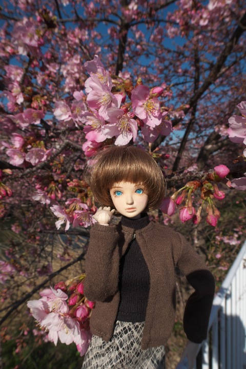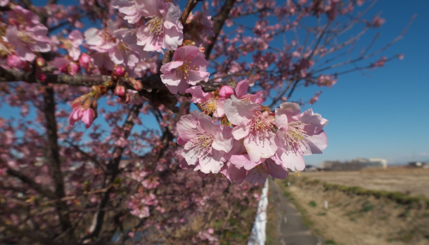 河津桜ってピンク色が濃いので青い空に映えます。お天気が良いし、最高です。