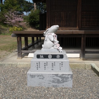 狛犬でなく狛ウサギ。何か「因幡の白ウサギ」と関係があるみたいです。
