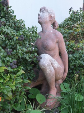 そのまま町のなかを散策します。このあたりお家はどこもお庭にお花がたくさん、そしてなぜかここにも彫刻が