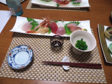 楽しみにしていた夕食です。メインのお料理は9品。でもその一つ一つが芸が細かくてすごい。お刺身