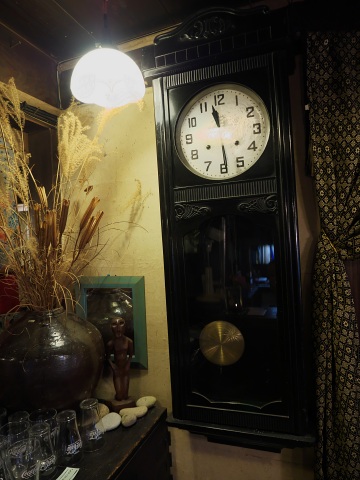 下右のテーブルは直径1mほどある一本の木をくりぬいてつくったもの、すごいね。
