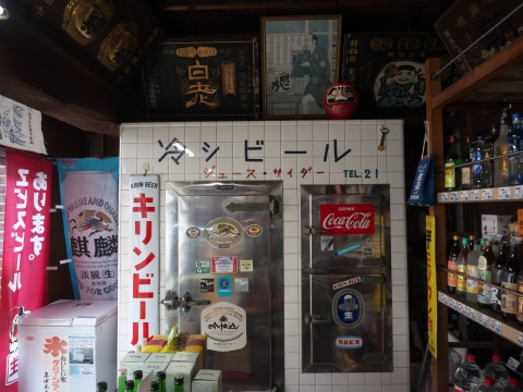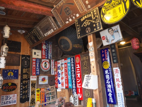 途中、土藤商店という酒屋さん前で飾り看板やホーロー看板に足が止まります。これはこれでものすごく