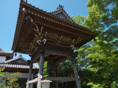 こちらは等學寺、銅鐘は国指定重要文化財。その鐘の下でネコが気持ちよさそうに