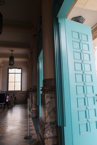 こちらは築地本願寺。関東大震災の後に再建された本堂はインド の石窟寺院風だそうで、
