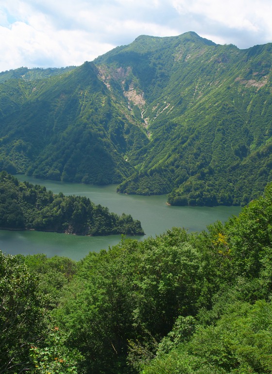 早朝出発なので、昼前なのにおなかがすいてきました。大白川駅のお蕎麦やさんを思い出して訪ねてみますが、 まだ開店前でした。 そこでちょっと山奥にドライブ。やあ、ここもなかなかの絶景だなあ。 ![]() 11:00 この大白川駅の2階にあるのが蕎麦処「平石亭」。ちなみにお昼時には只見線を見ながら蕎麦をいただける・・・。 と書きたいのですが、お昼時に通過する列車はありません。 ちなみにほかに開店を待つ方も何人かいて、もしかして有名店なのかもと思ったりします。 ![]() 注文したのは鬼面そば(1200円)。 山菜の和え物と天ぷらがセットになってます。 ![]() すごく透明感があって歯ごたえも充分。正直、こんなにおいしいお蕎麦は久しぶりです。あとで調べたら、やっぱり そこそこの有名店で遠方から訪れる人もいるみたい。 11:45 ここは国道252号線の六十里トンネルの手前、これを抜けると福島県に入ります。 冬になるとこのあたりは数mの積雪があり、谷間のこの国道は完全に埋もれてしまうってことなんでしょうね。 ![]() 長いトンネルを抜けると急に景色がひらけ、眼下にダムによってできた田子倉湖が望めます。 ちなみに只見線はこの下を通って福島県方面に抜けています。 ![]() ![]() こちらは鉄道旅では見ることのできない絶景です。 ![]()