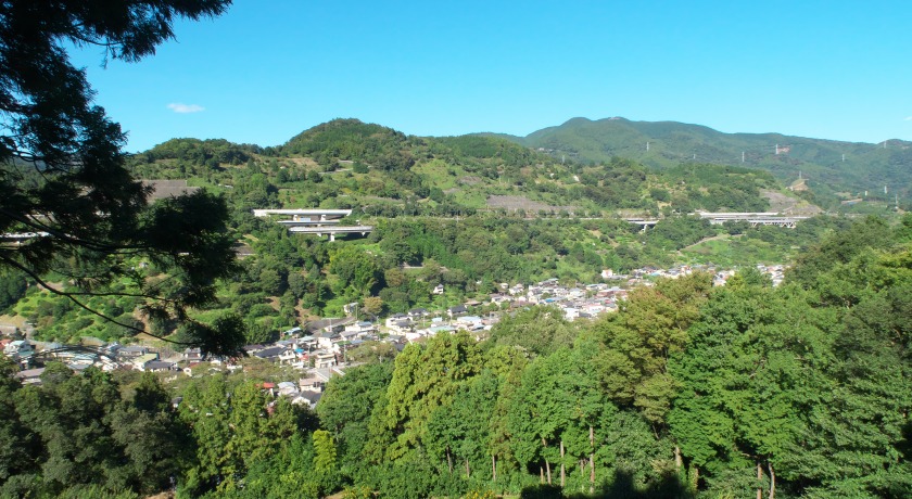 小田原から相模湾まで見渡せます。城の反対側からは街道(現在の国道246号線)を見下ろすこともでき、城がここに造られた