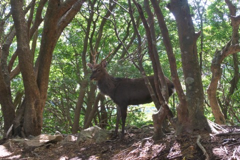 途中で出会ったシカ。お互いに10秒ぐらい見合ってました。