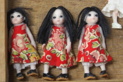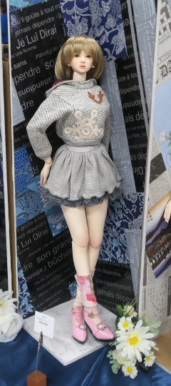 ドールワールドリミテッド2017 2017.12.03 5月のデザインフェスタから半年、久しぶりのイベント出展です。 ドールワールドリミテッドとドールワールドフェスティバルは今では数少ない創作系のお人形が出品される ドールイベントで、その規模こそ一般的なドールイベントに比べれば小さいけど、個性的でここでしか見られ ない手づくり品が多く出品されます。 12.03(日) 8:05 浅草駅に到着です。今日はお天気も良く暖かい日で良かった。荷物は全部持ち込みなので、雨が降ったら むちゃくちゃ大変。 ![]() スカイツリーがビルの合間から見える風景はいちばん浅草らしいね。浅草ってカメラを向けると、どこかに何か 目を引くものがあってフォトジェニックな街です。 ![]() 8:20 会場の都立産業貿易センター浅草館に到着したら、まだ会場の設営中だったので、荷物だけ置かせていただいて 浅草寺周辺をお散歩しました。 ![]() 朝まだ早いのにけっこう人が多い、半分以上は中国人観光客って感じです。 ![]() 今日は福島の復興イベントが行われる予定のようで、境内ではその準備がすすめられていました。あとで暇を見て もう一度来ることにしましょう。 仲見世に続く参道はきれいに銀杏で彩られています。 ![]() ![]() 新仲見世通りから見たスカイツリー、この風景が好きで来るたびに撮影しています。 9:00 会場に戻ってきて準備開始です。今回のイベントは貿易センター4Fのワンフロアでネイチャーアニマルワンダーランド という動物系創作物のイベントとの共催になります。 ![]() 今回のレイアウトはこんな感じです。大きなお人形は4体、小さな方は10体持ち込みました。 ![]() まずは大きな方のお人形、オリジナルの球体関節人形です。人形の着ているワンピースはすべてJETRUNNER;Dのみけ様に 作っていただいたものです。 ![]() 左から mirai、chie、kanako、miu。左2体は最近の作品、右2体は過去の作品をリメイクしたものです。実のところ旧作品2点に ついては前日まで手を加え続けていました。特に miu はウイッグ交換とアイラインの調整をしたらがぜん良くなった感じです。 こちらはリアル系ドールの自分なりの完成形だと思っています。 1:6サイズの娘達は基本的にオビツSBHボディとオリジナルヘッドの組み合わせです。OFは主に arisutedyisu0511様の作品です。 こちらの背景は自作で、時計やライトなどと組み合わせてベッドサイドやデスクトップに置いて楽しめるようにしています。 ![]() 今回は従来の nano、sayaka シリーズに加えて、TBLeagueなどのアクションフィギュアにも向くドールヘッドを持ち込みました。 レジン製のヘッド本体にアイやウイッグを組み合わせたもので、一つ一つ手作りで仕上げています。 ![]() ちなみに今回の出品物の大きな画像はこちらにあります。こちらの方がちゃんと写っているので、詳細はこちらを参考にしてください。 page671 10:40 準備が早く終わったので浅草寺の境内に戻ってみます。朝食が早かったので、ちょうどおなかも空いてきました。会場は福島県の 名産物でいっぱい!(お酒もあったけど、荷物になるので買えなかった) ![]() ![]() 左は二本松のざくざく汁。鶏肉のほかに根菜類が名前のとおりざくざくと切って煮込まれているものでとってもおいしかったです。 右は本宮烏骨鶏の焼き鳥、しっかりとした食感でうまみが強い鳥だね。 さてこのままだと何をしにきたのか分からなくなっちゃうので会場に戻ります。 ![]() 11:30 開幕です。他のドールイベントに比べれば静かなオープニング、それでも12:00を回るころになると会場はけっこう混雑してきます。 いつものことですが自分のブースに列ができることもなく、静かに淡々と時間が過ぎてゆきます。 今回目立つように、こんなものを置いてみました。 ![]() イベントに出るようになってもう5年近くなるのですが、作品の完成度が上がってくるにつれ、大きな方のお人形は粘土でできた 創作人形であるとは気づいてもらえなくなりました。ようするに手作り感がなくなって大量生産品にしか見えなくなってしまうという ことなんです。 ここ訪れてくださった方々はそれなりにDOLLに関心がある方々ではあると思うのですが、創作人形が身近な存在という方は それほど多くないと思います。またそもそも一般の方々にとって人形趣味自体が身近なものでなくなってきているという背景もあ ると思います。 創作人形のブームがあったのはもう10年以上も前のこと、お人形趣味自体が低迷して、もう定期的に刊行されているDOLL雑誌 もありません。 そんな状況の中でこのドールワールドリミテッドやフェスティバルは主催者の方々がとてもよく頑張ってくださっていると思います。 実際、以前に出ていたドールショウやドルパあたりでは創作人形系の出展はほぼなくなり(自分は最後までがんばっていた方)、 芸術系のデザインフェスタあたりでも出展数は激減(ワンダーフェスティバルあたりも出たけど、こちらはちょっと場違いだった)して います。 5年前、