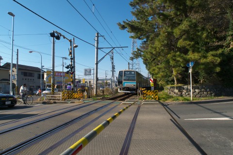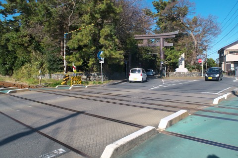 この踏切を渡ったところで相模線が通過、渡るのがもうちょっと遅かったら、鳥居と一緒に撮影できたのに・・・。タイミングが悪すぎ!