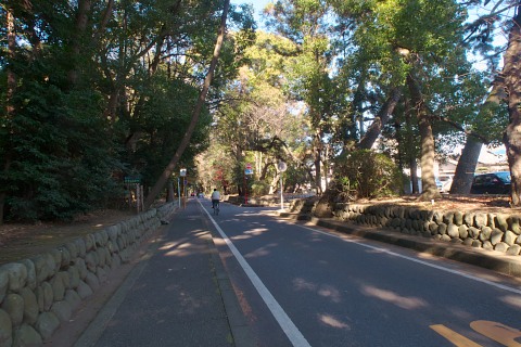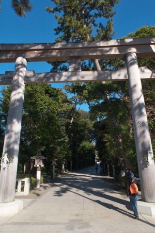 緑道を抜けると、そこは相模の国の一ノ宮「寒川神社」の入口、正面に一の鳥居があります。