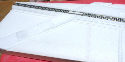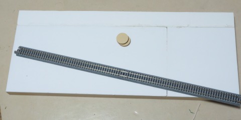 9 駅Fの形にあわせてスチレンボードを切り抜き、 貼り付けます。 |