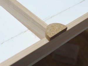 3 円形のコルク片を適宜切断して裏側に取り付けて 台座とします。 |