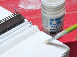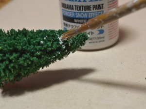 | 15 タミヤの情景テクスチュアペイントをたたくように 全体に塗って粉雪の感じを出します。 |