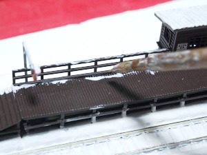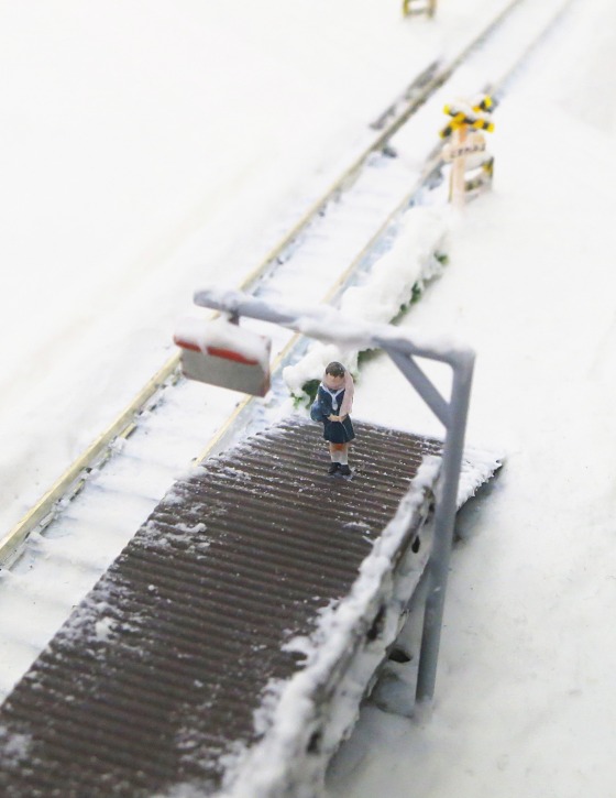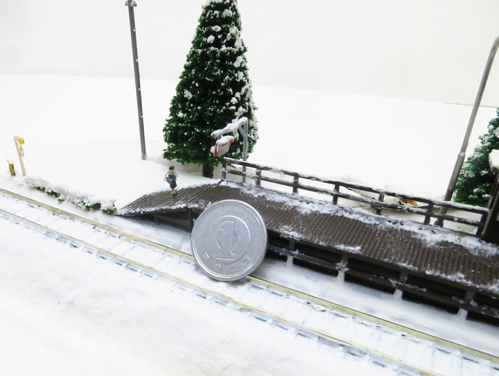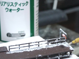 19 モデリングペーストをホームや待合室の屋根に 塗って雪を表現しています。 |