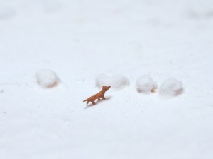 | 37 アクセントに犬。久々に雪がやんだので、じっと いてられずに出てきたという設定です。 |