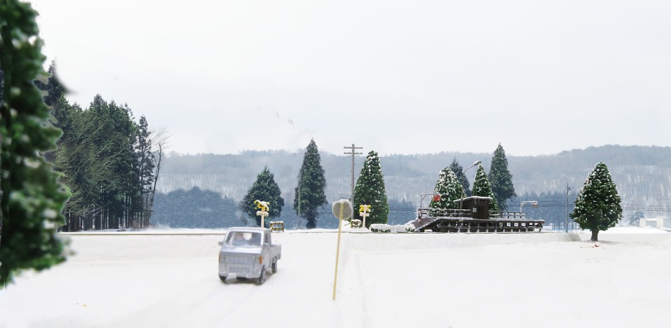 31 道路標識を追加。こちらはさんけいの製品。雪を のっけて雰囲気を出します。 |