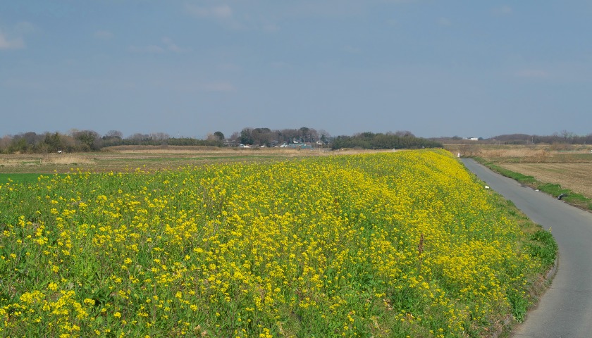この荒川中流域では支流を含めて何本もの河川が流れているのですが、その土手や堤防では菜の花が満開になりつつありました。