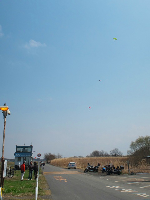 到着したらスカイダイビングを楽しむ人たちがちょうど降りてくるところでした。