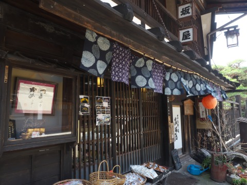 もちろん宿場町だった頃とは違って宿屋は小数、今では旅籠だった建物にいろいろなお店が入っています。こちらの名物は漆器と曲物、