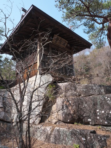 奇岩の一番高いところにある社は浦島堂、でもよくこんなところにつくったね。