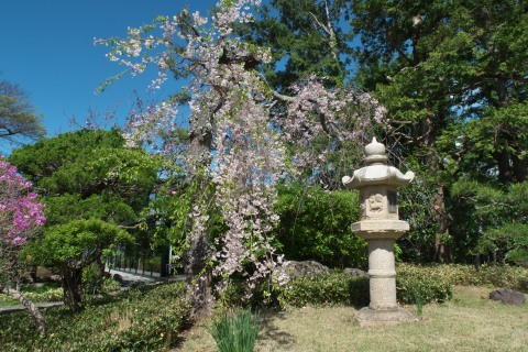 庭ではシダレザクラが満開でした。