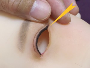 8 ドール用の睫から適当なサイズのものを選んで 取り付けます。 |