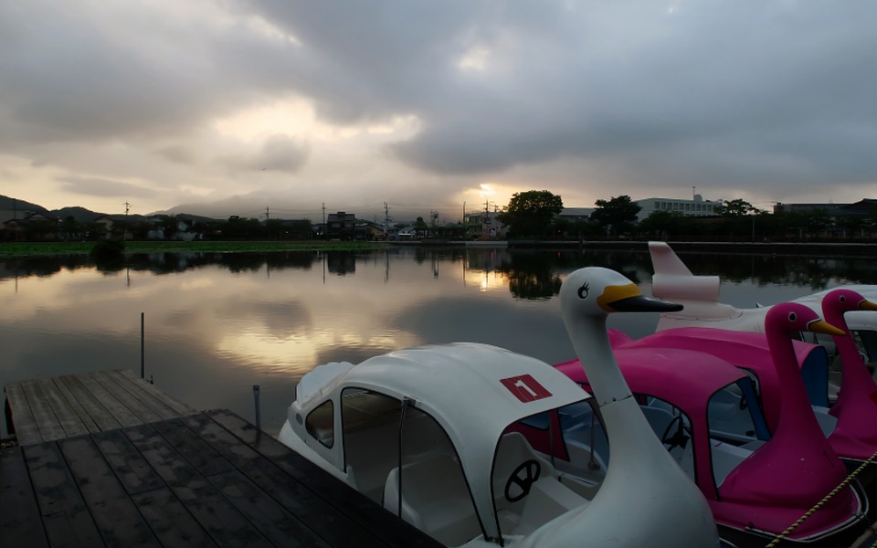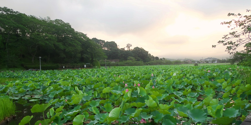 最初に写っているのは静岡県の藤枝市にある蓮華寺池公園というところ。池一面を覆う蓮が花をつけ始めていました。時間帯は朝の5:00ぐらいです。