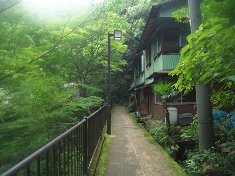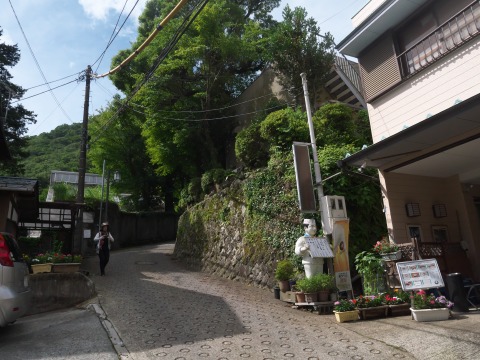 急な細い道を登ってゆきます。途中廃墟があったりして、ちょっとした秘境駅に向かっている感じです。湿度が高くってレンズが曇ってきた。