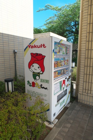 町役場に置かれた自動販売機には「たまたん」という町のキャラクターが描かれていました。どうみてもチューリップなんだけど、薔薇の妖精をイメージした
