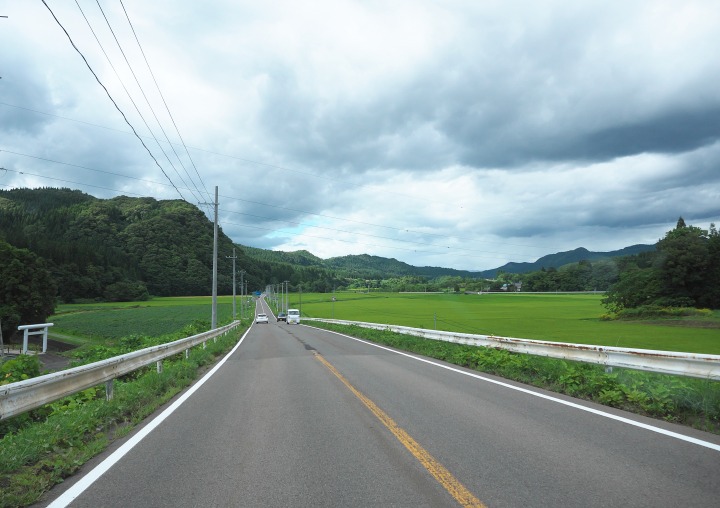 秋田と青森の県境あたりです。左手は世界遺産の白神山地。