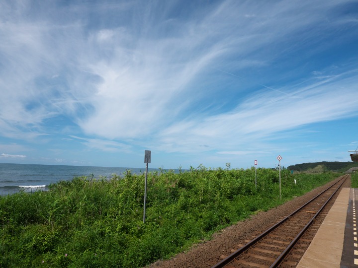 ここから眺める風景はなかなかのもの。ちなみにこの驫木駅は夕日の眺められる絶景の駅として有名みたいで、鉄道ファンも何人か撮影に訪れていました。