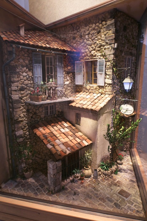 そう、ジオラマって光の加減でぜんぜん1違って見える。光のコントロールって、とっても大切。思わずのぞき込みたくなるような空間づくりに