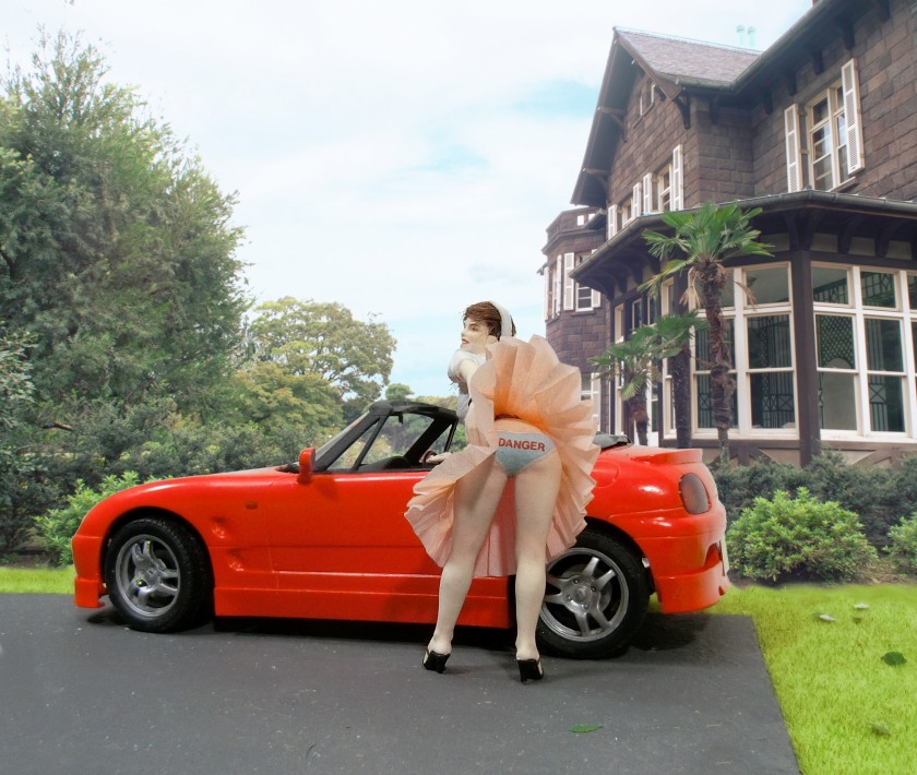 左側はマスターボックスのフィギュア。ミニ丈のワンピースでタイヤ交換するのはちょっと不自然なので、ここは少しポーズを変更