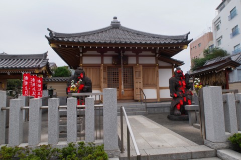 赤紙仁王尊です。(東覚寺) なんでも、自分の身体の悪いところと同じ場所に赤紙を貼ると治るんだとか。江戸時代からずっと