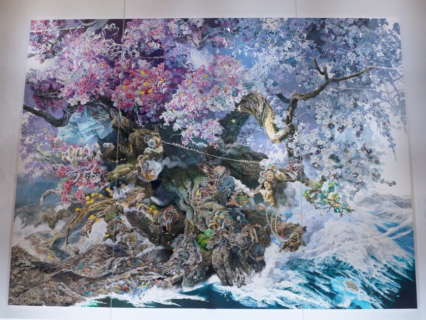 自然災害を乗り越えた文明の再生がテーマ。下の写真は拡大図で実に緻密。全体の大きさは4m×3mという巨大な作品、いったいどれだけ時間がかかったのかな?