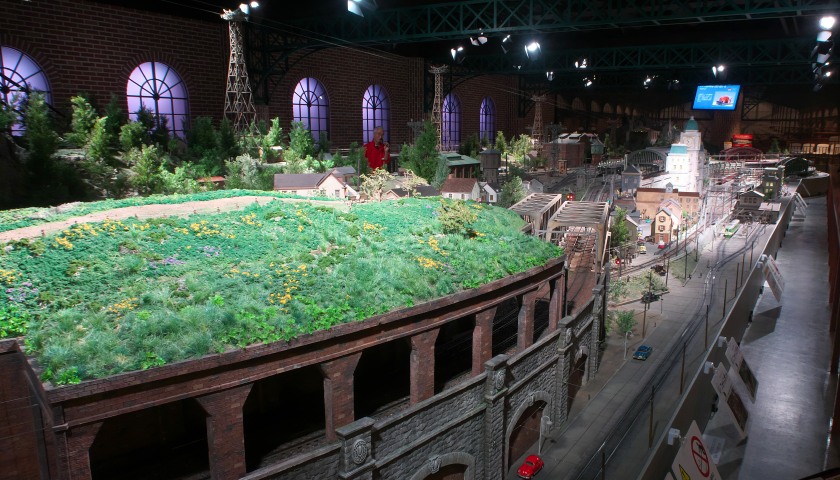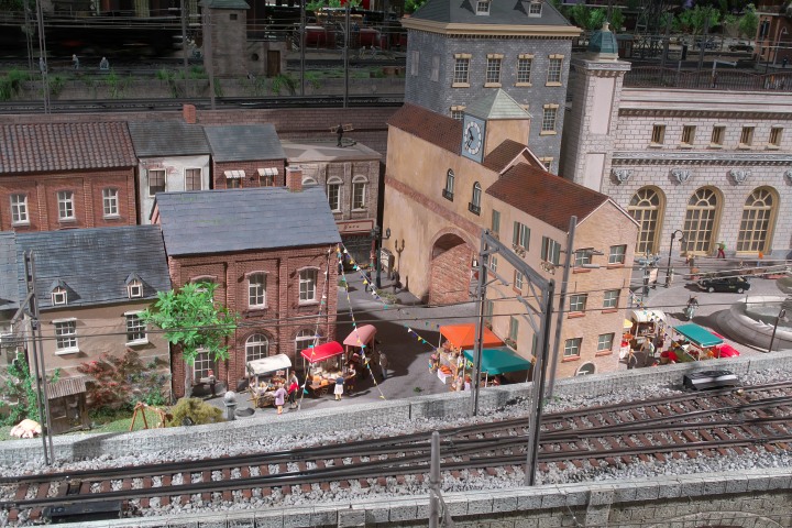 いろいろと展示物はあるのですが、やっぱりいちばんの見どころは310m²もあるという鉄道レイアウトだと思います。ヨーロッパの街、おそらくはアルプスの麓の