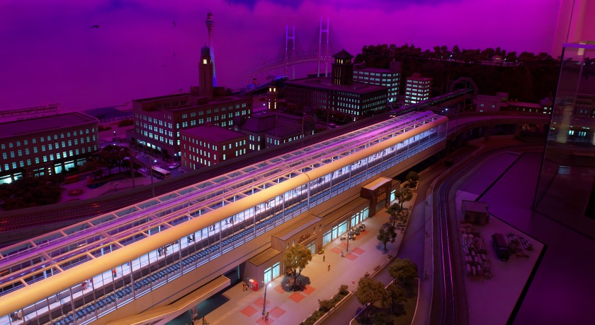 別室にあるもう一つの鉄道模型レイアウト。こちらでは横浜の駅周辺が再現されています。