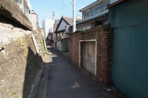 通りから更に奥まったところにある風呂屋さん。今も使われている生活道路側に残る赤煉瓦の壁が何とも良い感じです。