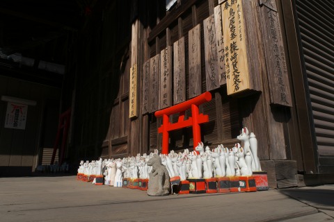 それほど古くなく、こじんまりした神社なのですが、奉納された小さなキツネ様の数がすごい。きっと霊験あらたかな神社として