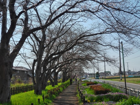 その相模線の相武台下駅と下溝駅の間にには1kmほど桜並木が続いています。このときはまだ咲き始めだったけど、満開の