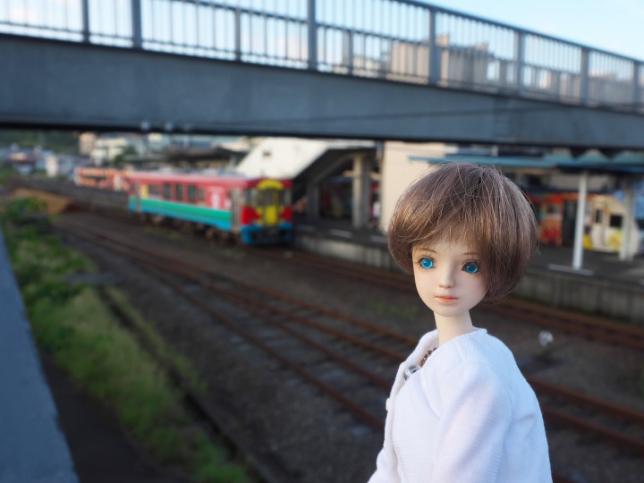 ちょっと諦めかかったところに駅があった。ここでやっと追いつく。再び走り始めたところで撮影、これは運が良かった。